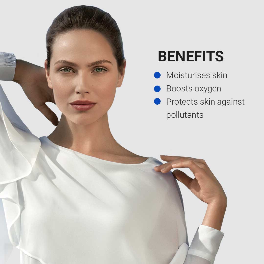 Cream for stressed and suffocated skin suitable for normal to dry skin type. Moisturises skin, Boosts oxygen and gives protection against the pollutants.